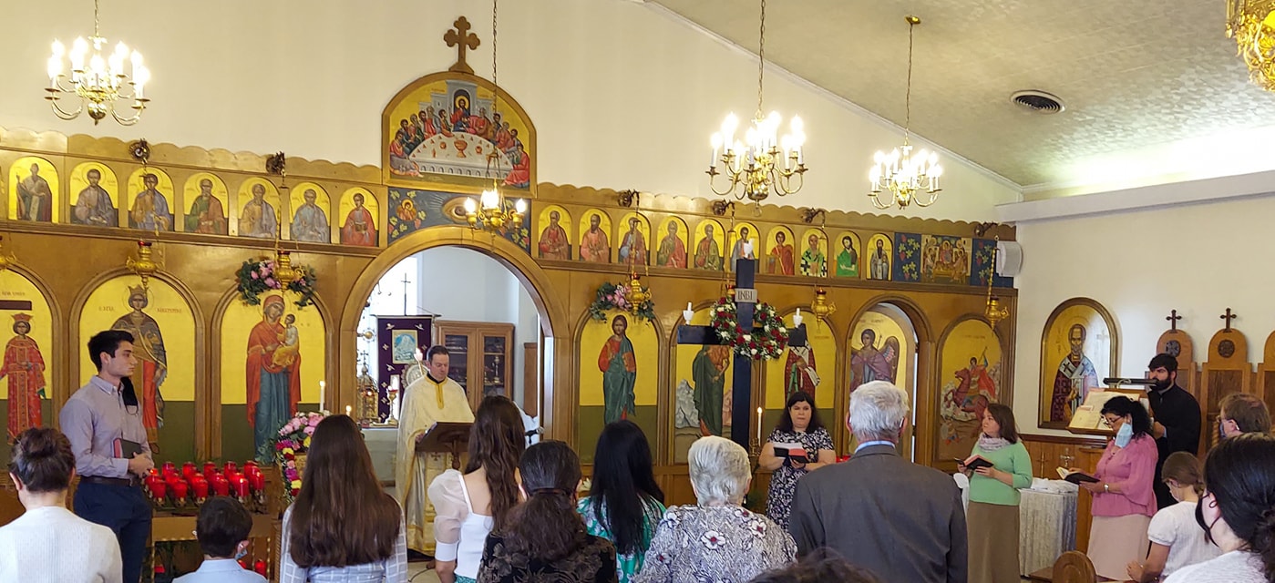 Father George was born in the village of Daphni, Greece in 1939 and was raised in Klafsion, Evrytania. With an upbringing in the Greek Orthodox Church by his father’s side, he learned to chant and felt the calling of Christ to the priesthood at an early age. He followed his primary and secondary education with studies at the Theological School of Volos and service in the Greek Air Force, and after immigrating to the United States in 1962, studied at Virginia Polytechnic Institute in Blacksburg, VA. Shortly after, he met the love of his life—Betsy Georgoulias—at a wedding in Winston-Salem, and they were married on July 7, 1963. Following his wedding, he earned a Federal Aviation Administration license from Piedmont Aviation Institute, then together with his brother Jimmy, began several successful restaurant ventures, in which they worked side-by-side from the 1960s until 1990.